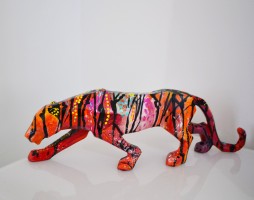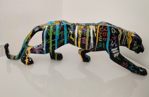 Dotée d'un esprit très imaginatif, Âme Sauvage ne s'exprime pas uniquement sur la toile, elle s'exprime aussi sur de jolies sculptures pop art. Le travail artistique est très intéressant puisque l'artiste s'exprime sur chaque face de la panthère, ainsi peindre sur un support 3D est un travail délicat et passionnant pour l'artiste. Il faut beaucoup de patience et de minutie pour réaliser une sculpture panthère telle que celle-ci.