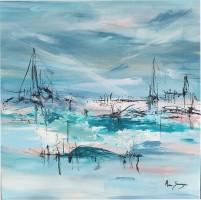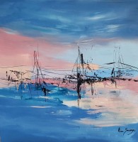 - de la mer : oh que j'aime la mer, et les jolies vagues en été ... mais aussi en hiver ! Le bleu est la couleur de l'eau et en tant qu'artiste peintre, peindre une toile abstraite bleue sur le thème de la mer apporte toujours un vent d'air frais dans l'atelier. La mer c'est aussi le symbole du voyage, des vacances, du bon air iodé. Bref, un tableau bleu sur le thème de la mer n'apporte que des choses positives.