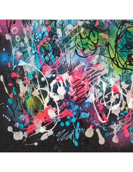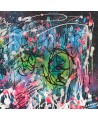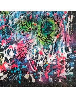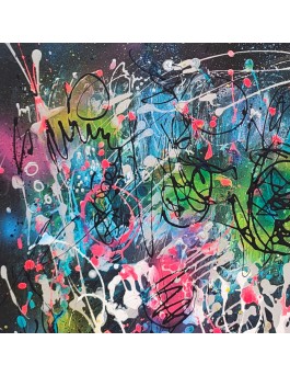 Technique : Acrylique sur plaque de bois au couteau à peindre et pinceau + aérosol