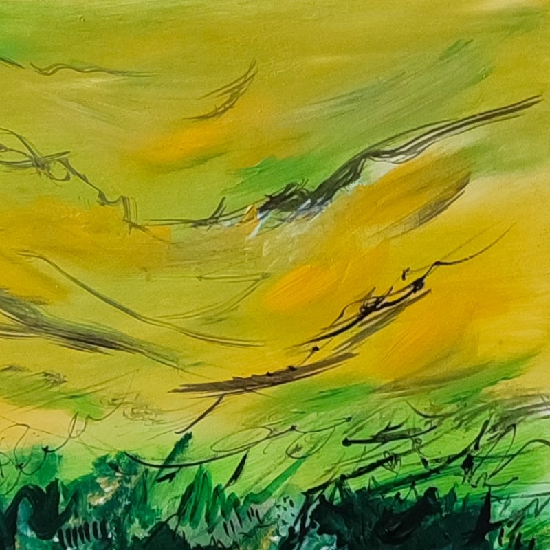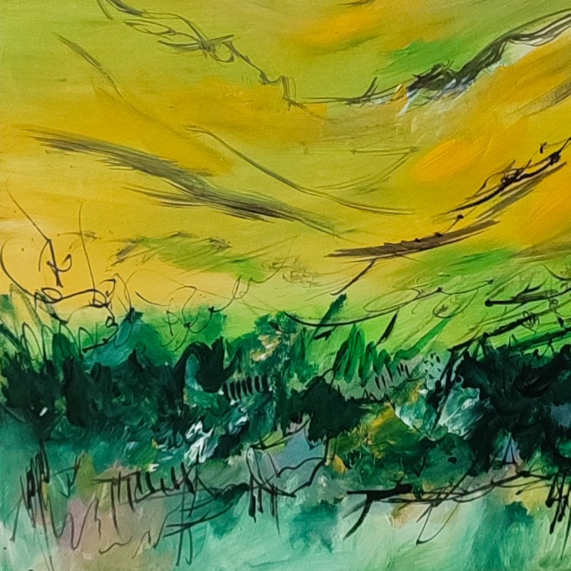 Technique : Acrylique sur plaque de bois au couteau à peindre et pinceau