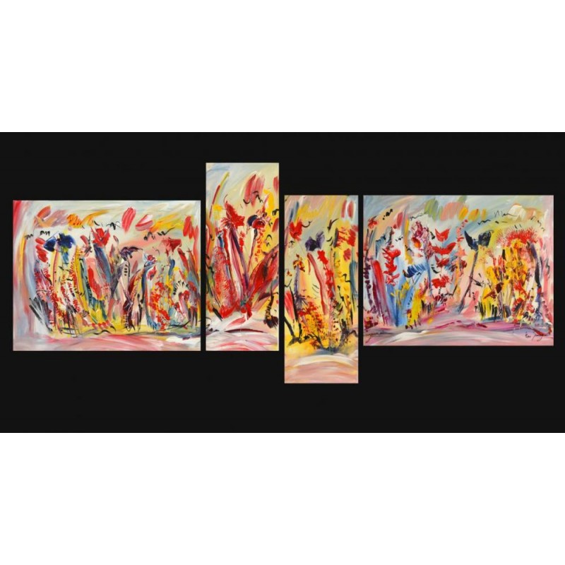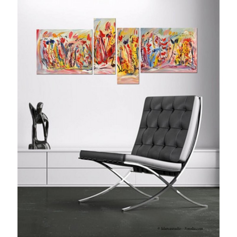 Ce tableau quadriptyque donnera une touche très moderne dans votre intérieur. Par son style floral et multicolore il apportera aussi de la joie de vivre dans votre pièce.