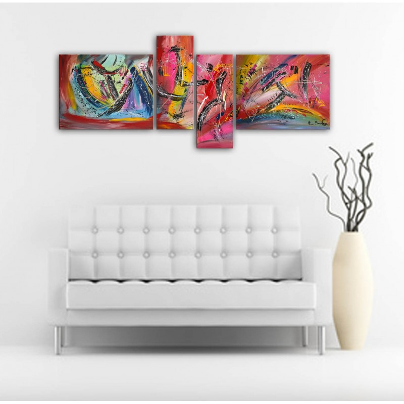 Tableau 4 parties multicolore